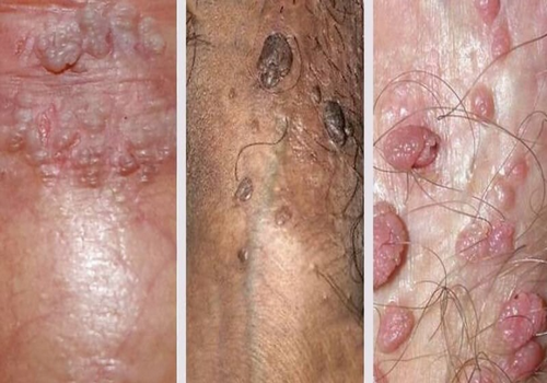 - Dương vật và bộ phận sinh dục nổi mụn nước, mụn thịt có màu trắng